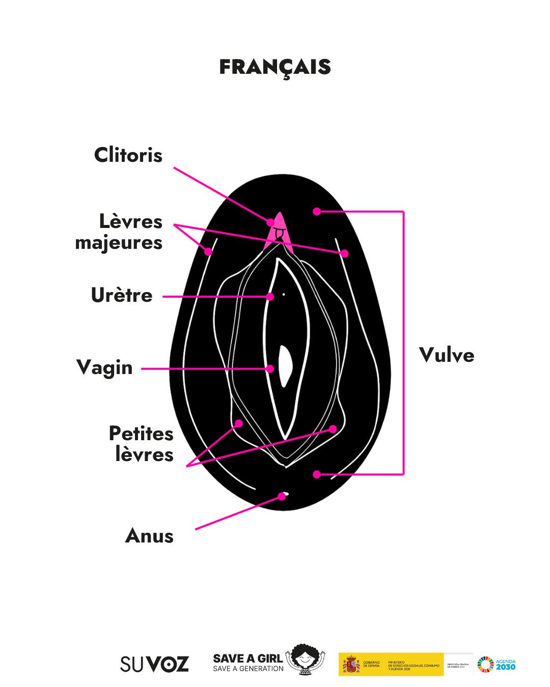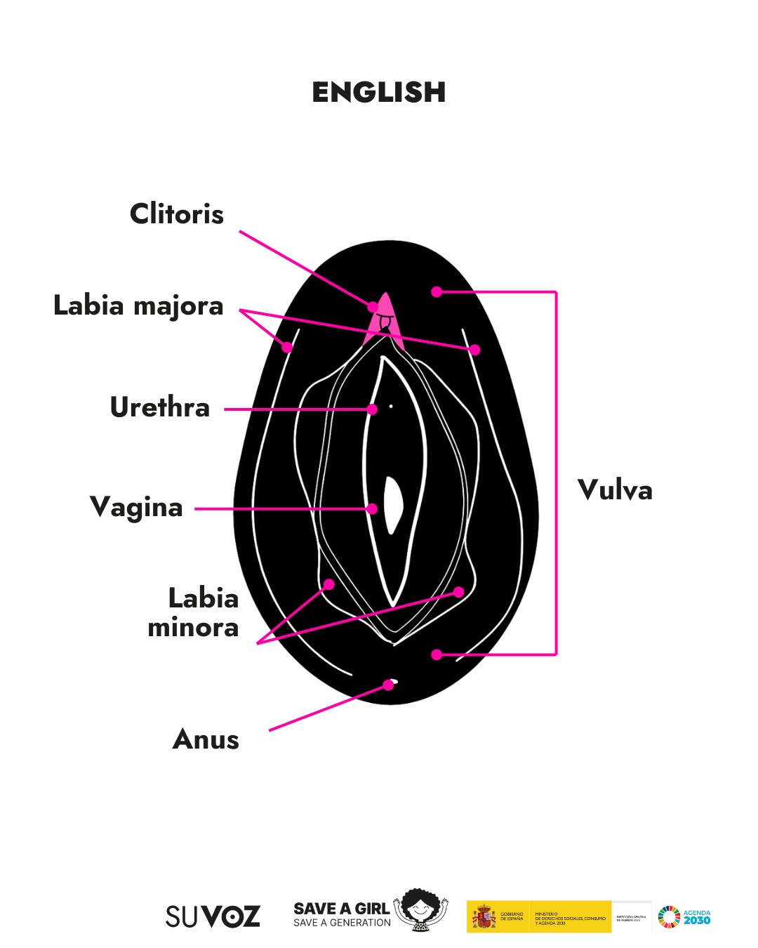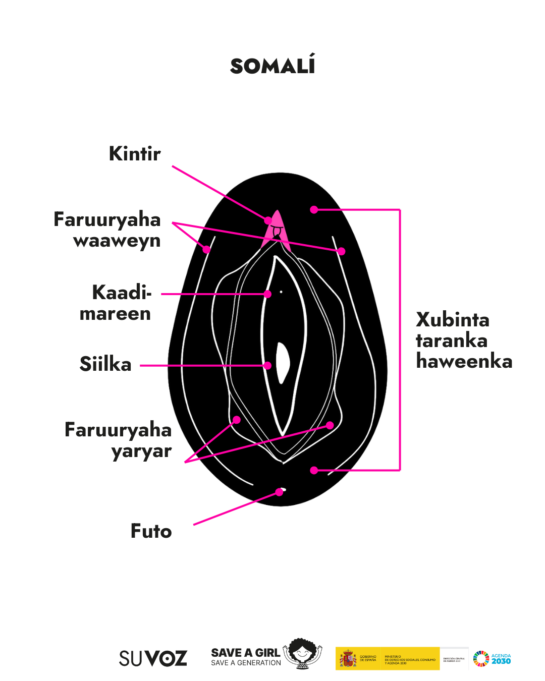 A diario en nuestro trabajo en Save a Girl Save a Generation, nos encontramos con muchas personas que sufren la barrera lingüística y por ello queremos mostrar las partes de los genitales femeninos en los idiomas mayoritarios y minoritarios que nos encontramos en nuestro día a día.