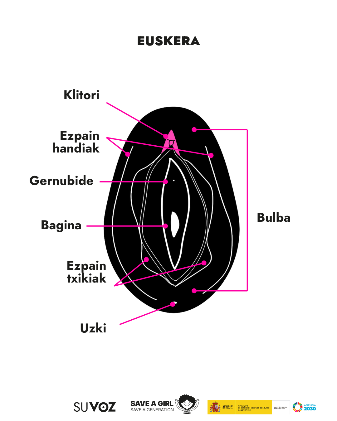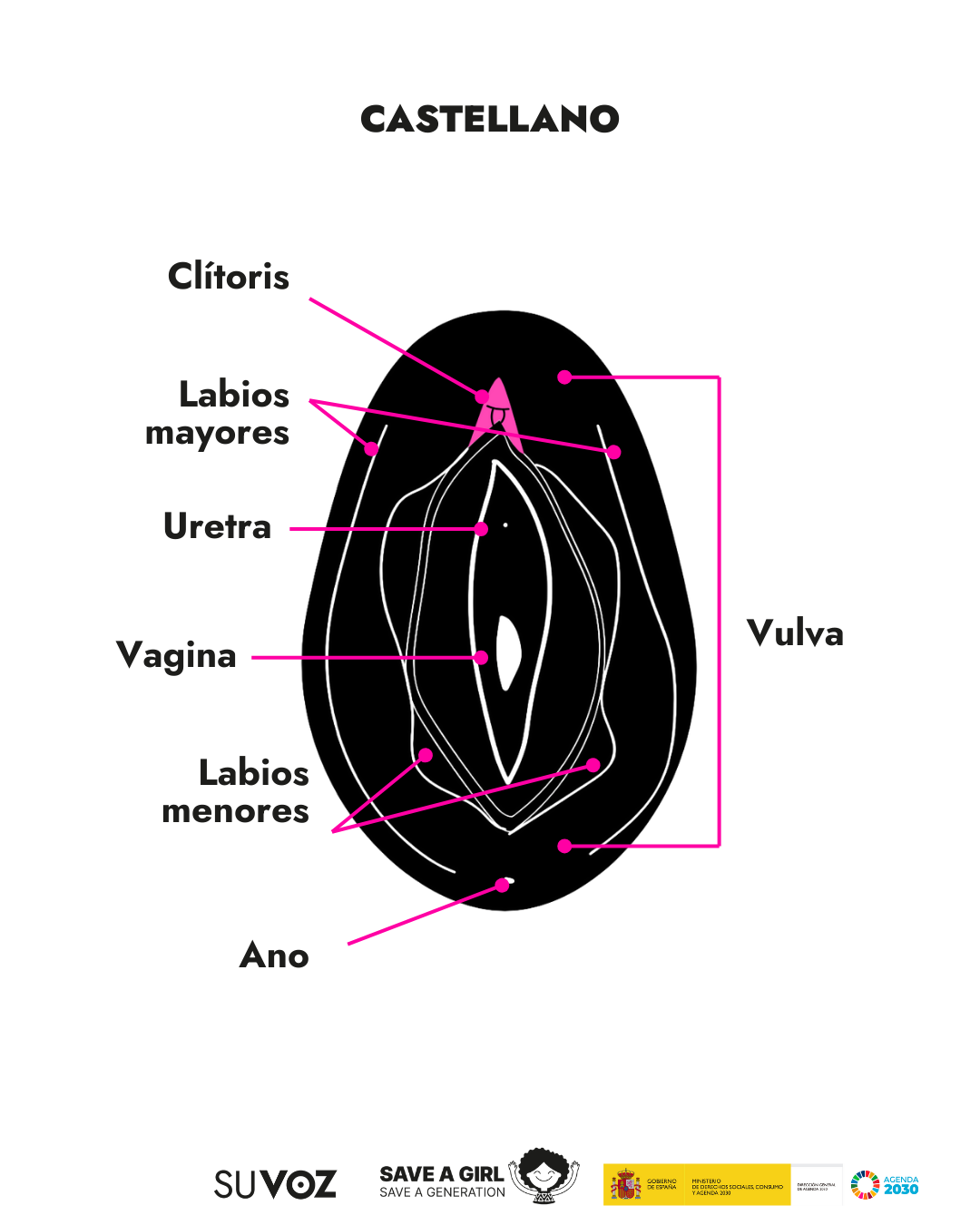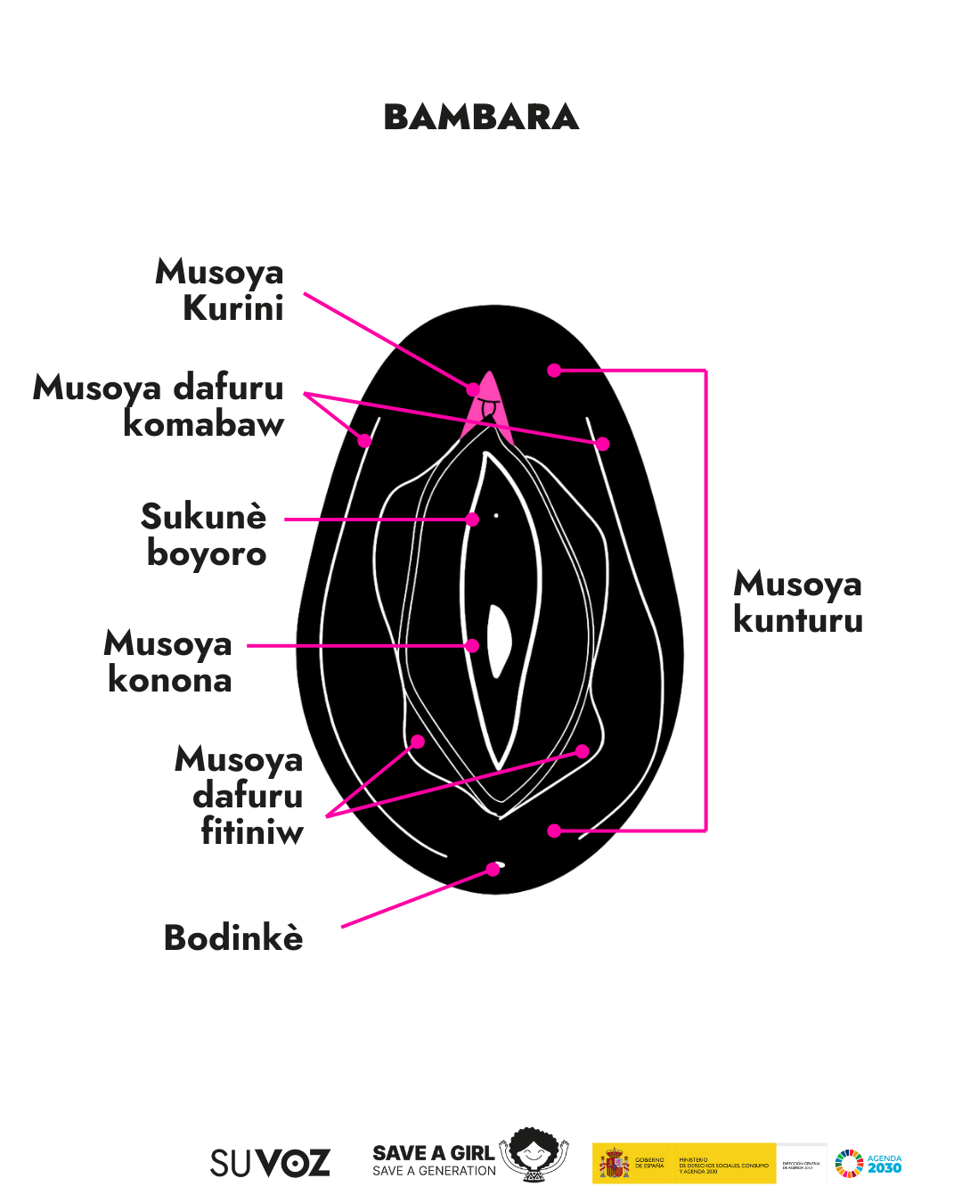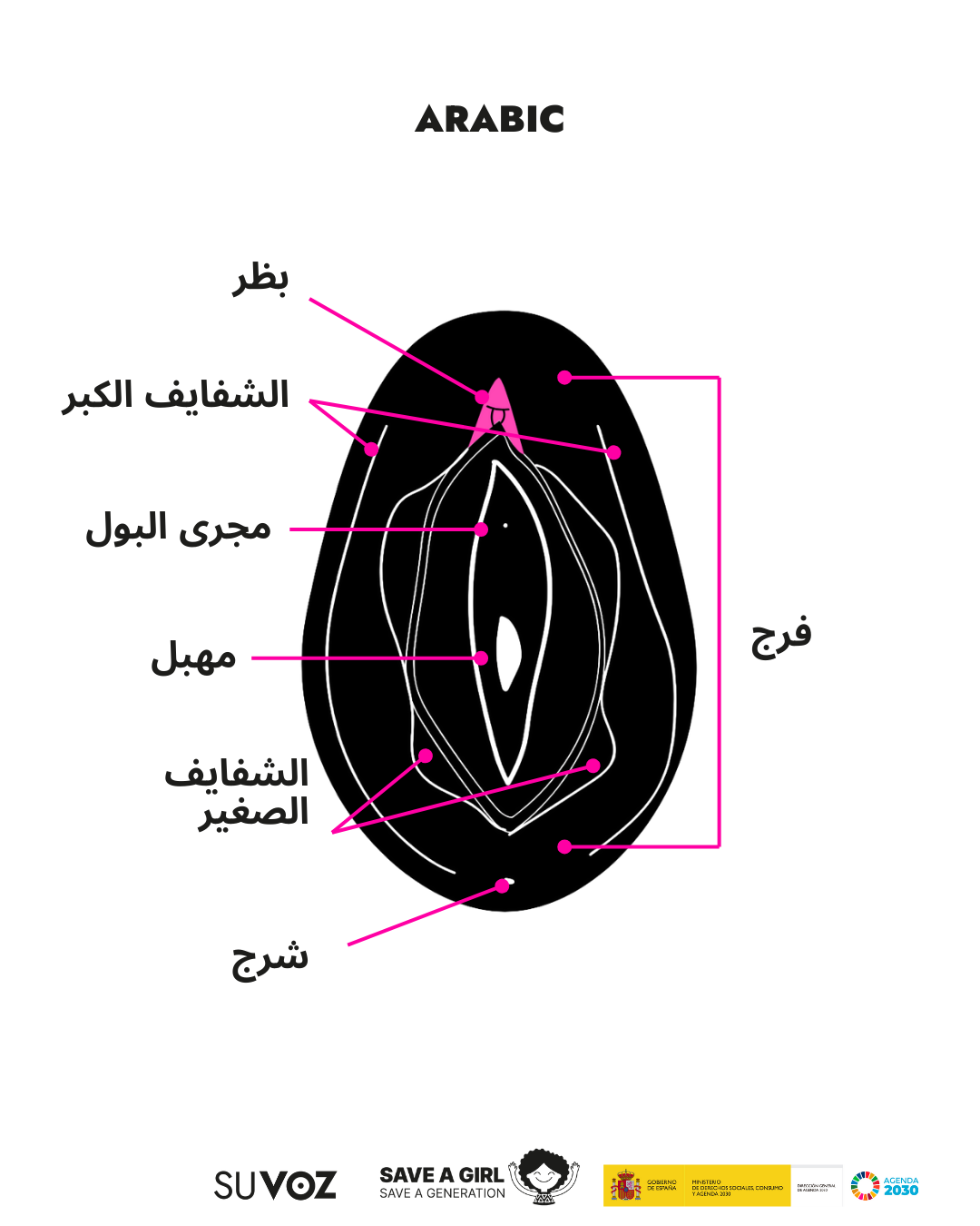 A diario en nuestro trabajo en Save a Girl Save a Generation, nos encontramos con muchas personas que sufren la barrera lingüística y por ello queremos mostrar las partes de los genitales femeninos en los idiomas mayoritarios y minoritarios que nos encontramos en nuestro día a día.